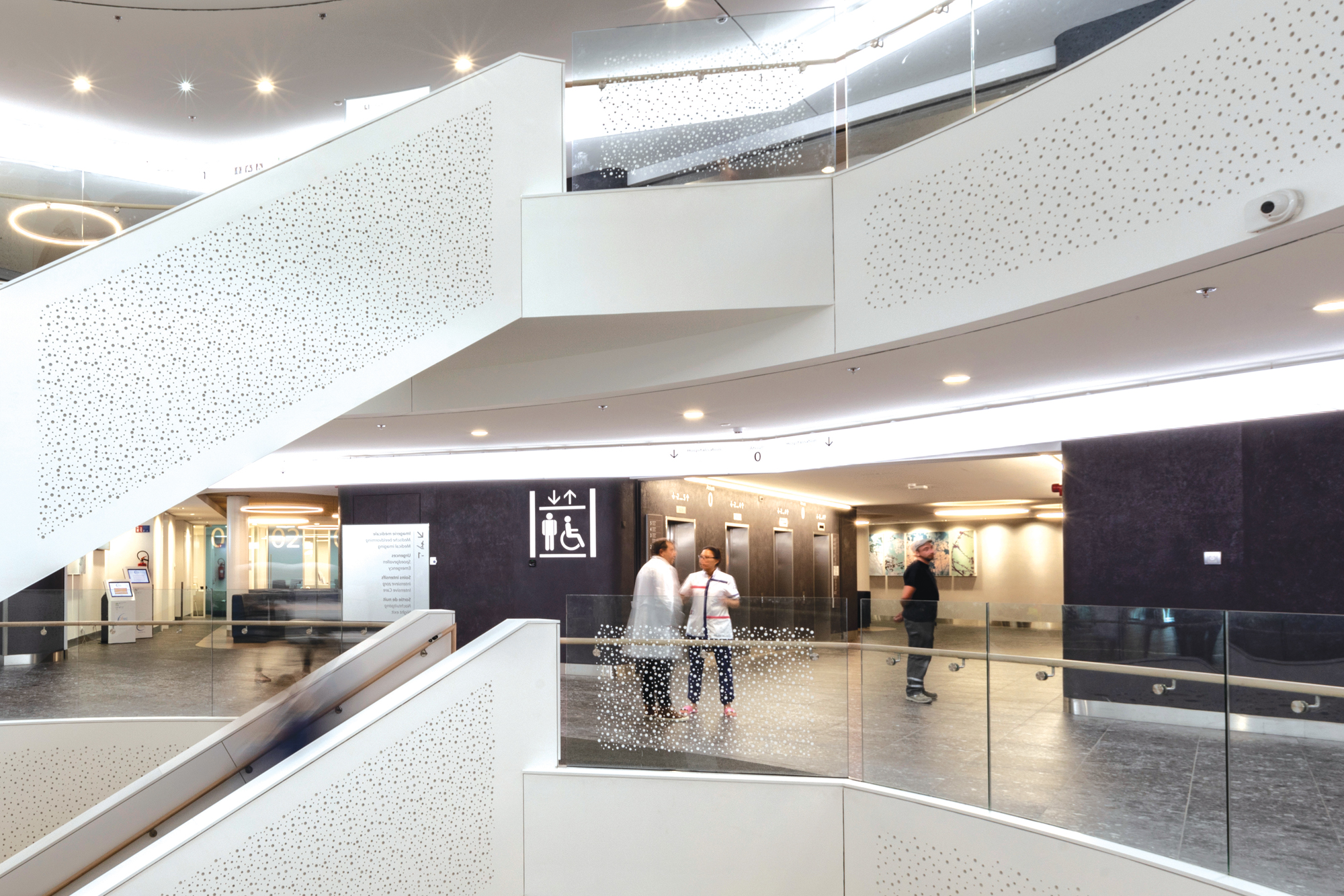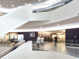 Het Delta-ziekenhuis installeerde de Airblade Wash+Dry in de centrale welkomsthal: ‘het atrium’. Daar kunnen bezoekers snel en hygiënisch hun handen wassen en drogen – direct boven de wasbak.